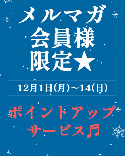 2025年12月1日(月)~12月14日(日) 上記期間中、お買上時に、 直近メルマガ配信内容をご提示にて「おみくじ1回を引き」 外れなしのボーナス特典プレゼント★ 今季の旬なファッションアイテムが勢揃いし...