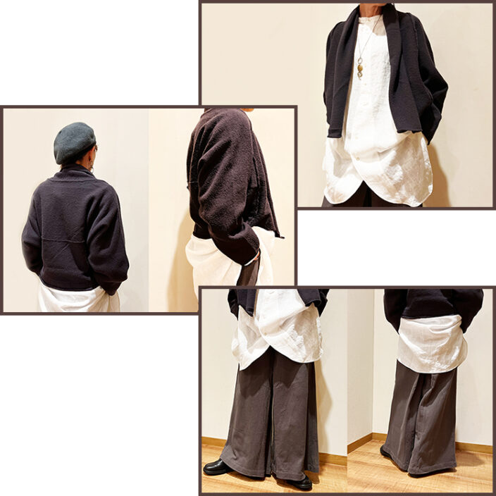 2WAY仕様のカーディガンを上下逆さまに着用!
