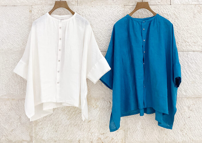15GWGリネン混衿元レース編み半袖プルオーバー
