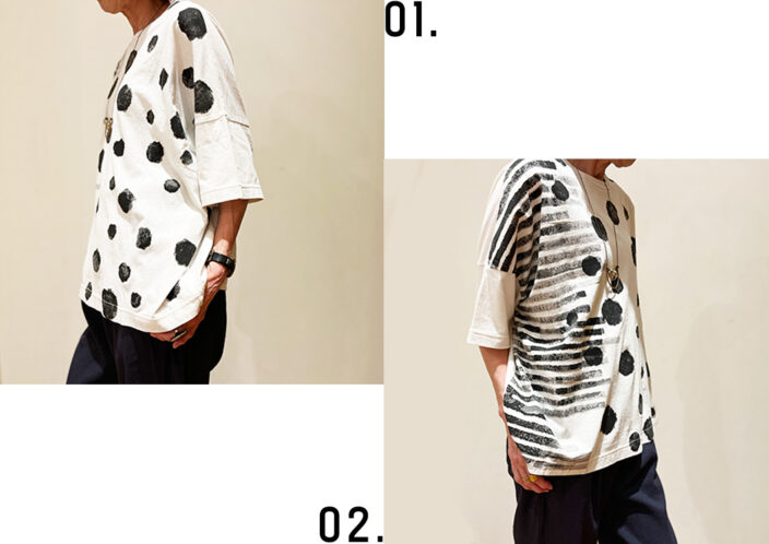 ボーダー&ドットプリント・コットン天竺プルオ-バー