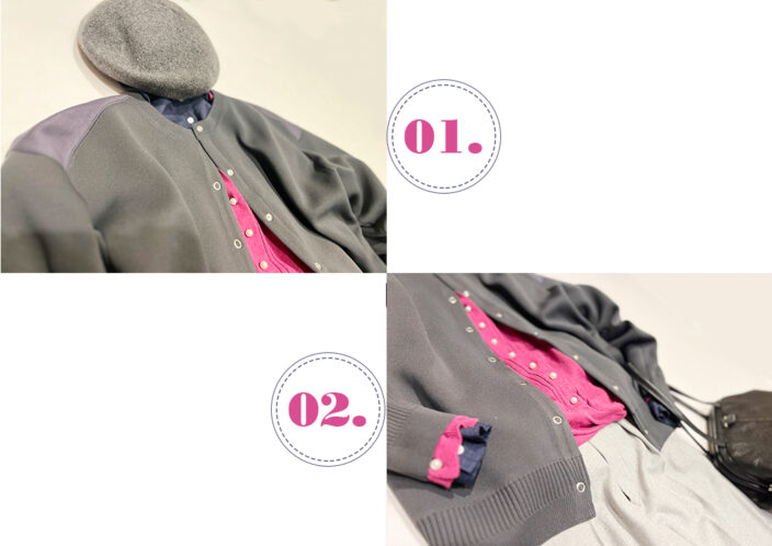 ボタンの開け閉めで胸元、襟元のレイヤードが楽しめます♪