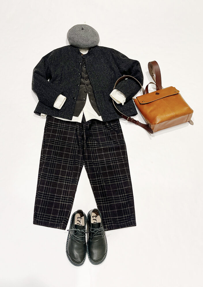 フロントはコーデュロイ、バックはチェック地に!