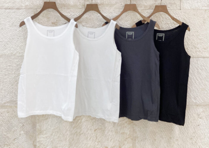 肌触りがよいコーマ天竺を組み合わせた素材のタンクトップです