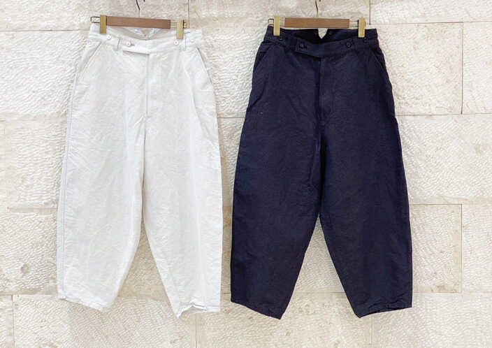 後ろにダーツが入り太もも回りはゆったり、裾にかけてはすっきりで