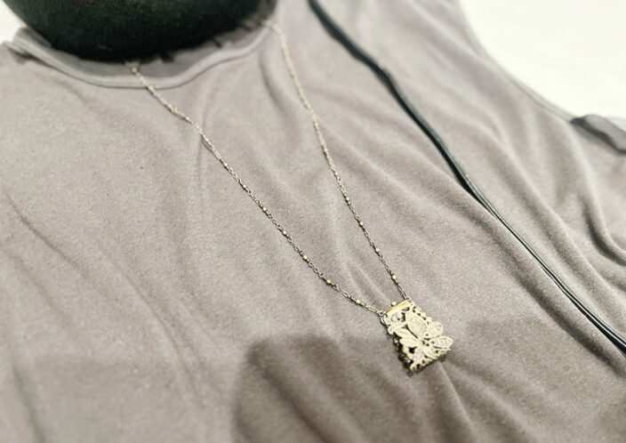 少し長めの後ろデザインと袖口には紐を通し、ぎゅっとギャザーを寄せた